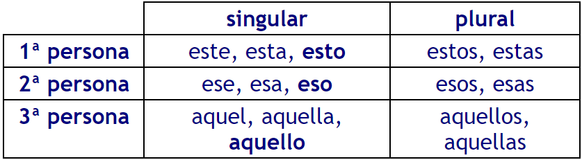 Demostrativos: (sitúan en el espacio).