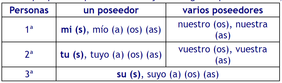 Posesivos: (indican a qué persona pertenece el objeto designado por el nombre).