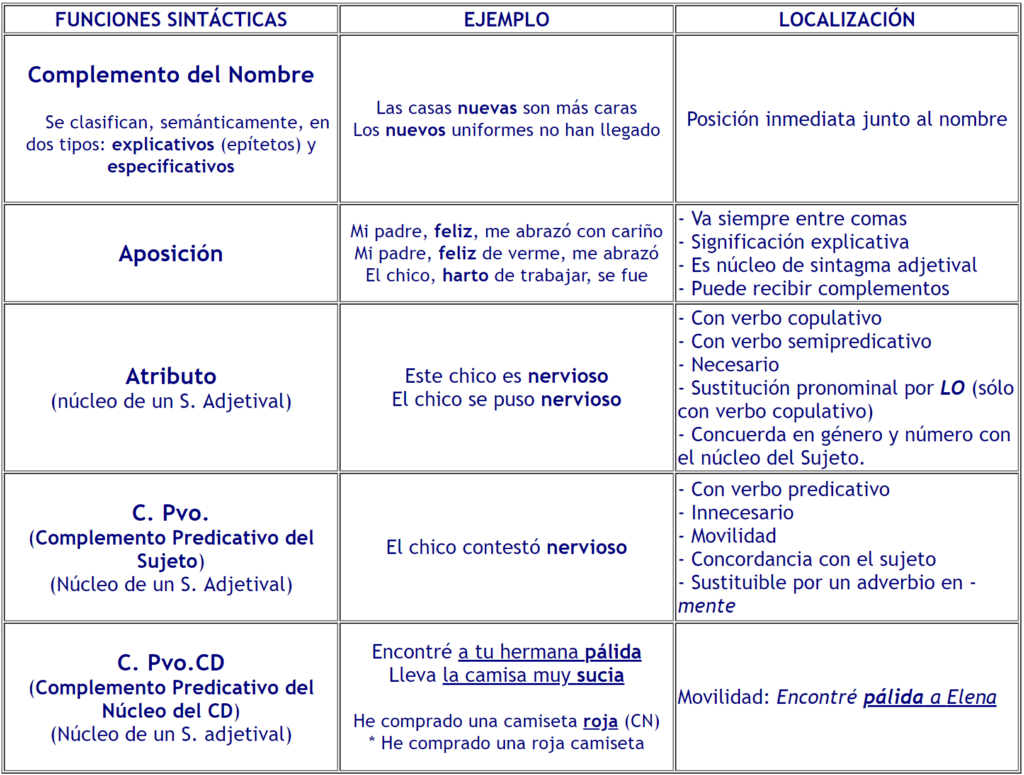 Clasificación del adjetivo y función sintáctica